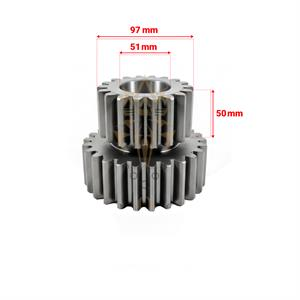 دنده کاریر چرخ جزء مجموعه دنده‌های کاریر است که معمولاً شامل دو چرخ‌دنده با اندازه‌های متفاوت است تا نسبت کاهش یا افزایش نیرو را در مجموعه چرخ فراهم کند. در این مورد، دو چرخ‌دنده با 18 و 25 دنده وجود دارد. این ترکیب معمولاً برای به دست آوردن نسبت دنده مطلوب بین ورودی و خروجی کاریر استفاده می‌شود. ابعاد دقیق داخلی/خارجی، عرض و گام به نقشه OEM یا کد فنی دقیق سوراخ داخلی/شفت داخلی وابسته است. ماده غالباً فولاد مقاوم با عملیات حرارتی است تا دوام لازم در محیط‌های سنگین را فراهم کند. تلرانس‌ها و ابعاد دقیق نیازمند نقشه OEM هستند.