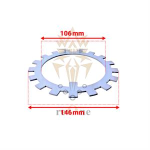 واشر چکنات سرفول چرخ، به عنوان یکی از اجزای تماس بین کاریر چرخ و توپی چرخ در مجموعه چرخ، نقش کلیدی در ایجاد سطح تماس صاف و پایدار دارد. با قطر داخلی 106 میلیمتر و قطر خارجی 146 میلیمتر، این واشر به منظور توزیع مناسب نیروهای محوری و جانبی میان اجزای چرخ، کارگیر و توپی چرخ طراحی شده است تا از لغزش، لرزش و فرسایش غیرضروری در طول بهره‌برداری سنگین جلوگیری کند. این قطعه معمولاً از فولاد مقاوم با عملیات حرارتی ساخته می‌شود تا مقاومت مناسبی در برابر سایش، ضربه و شرایط کارگاهی سخت داشته باشد. ابعاد دقیق و ضخامت واشر به نقشه OEM یا کد فنی دقیق سوراخ و شفت داخلی وابسته است؛ بنابراین برای تولید دقیق و سازگاری کامل با OEM، ارائه نقشه یا کد فنی ضروری است. وجود این واشر می‌تواند به کاهش downtime و نگهداری آسان‌تر سیستم چرخ کمک کند، به ویژه در شرایط کار سنگین و لرزش‌های مکرر.